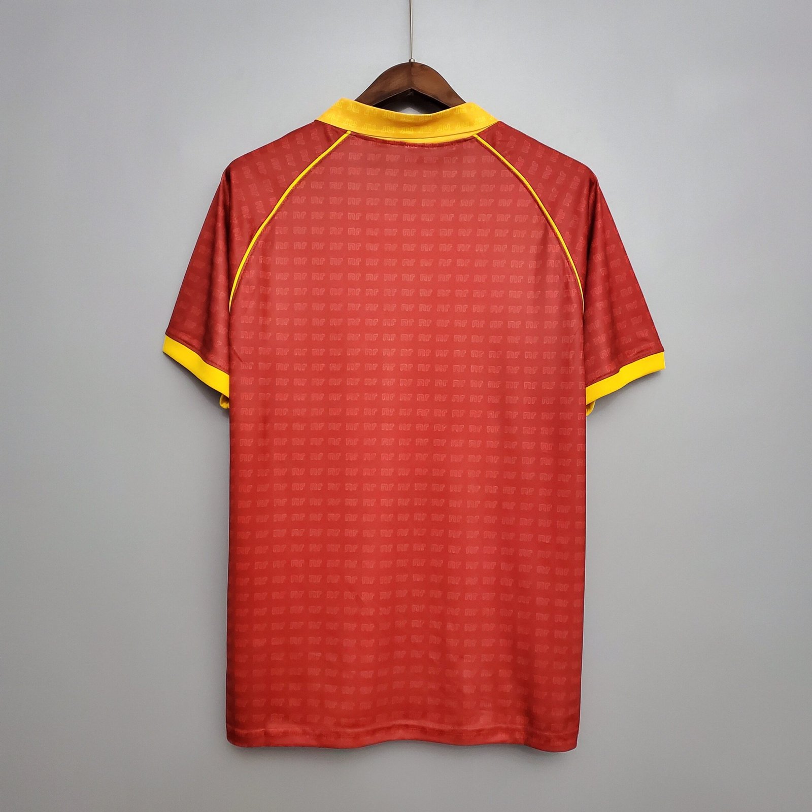 The Roma Home Kit 90/91 is a retro classic, featuring a bold red base with yellow accents on the collar and sleeves. Worn during a strong season where Roma finished 3rd in Serie A, this kit captures the club??s rich history and competitive edge of the early ??90s.