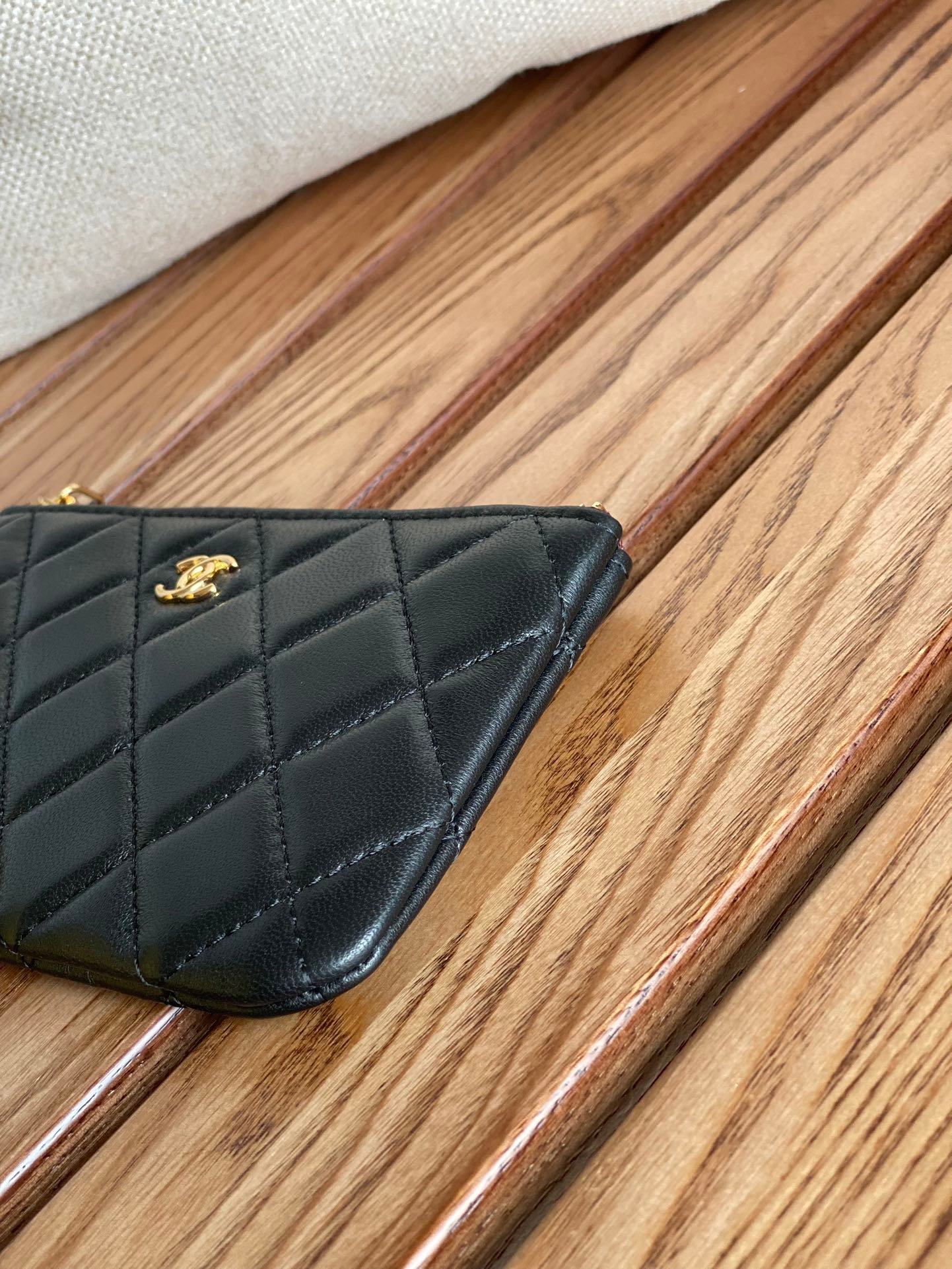 {Style No: 3753ACT1} CC CLASSIC SMALL 15 ZIPPED POUCH IN BLACK CALFSKIN