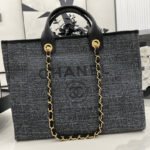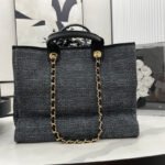 {Style No: IY5QZ6N8} CC DEAUVILLE LARGE 38 TOTE BAG IN BLACK CANVAS GOLD HARDWARE