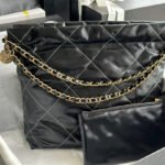 {Style No: HZX8XUXD} CC MEDIUM 37 HANDBAG IN BLACK SHINY CALFSKIN GOLD HARDWARE