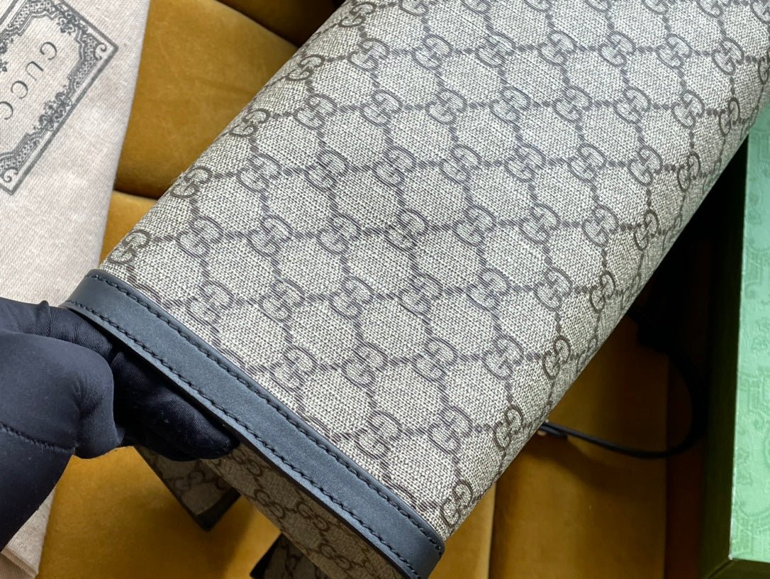 {Style No: TT7BL5F6} GG PADLOCK LARGE 35 SHOULDER BAG BEIGE CANVAS AND BLACK CALFSKIN