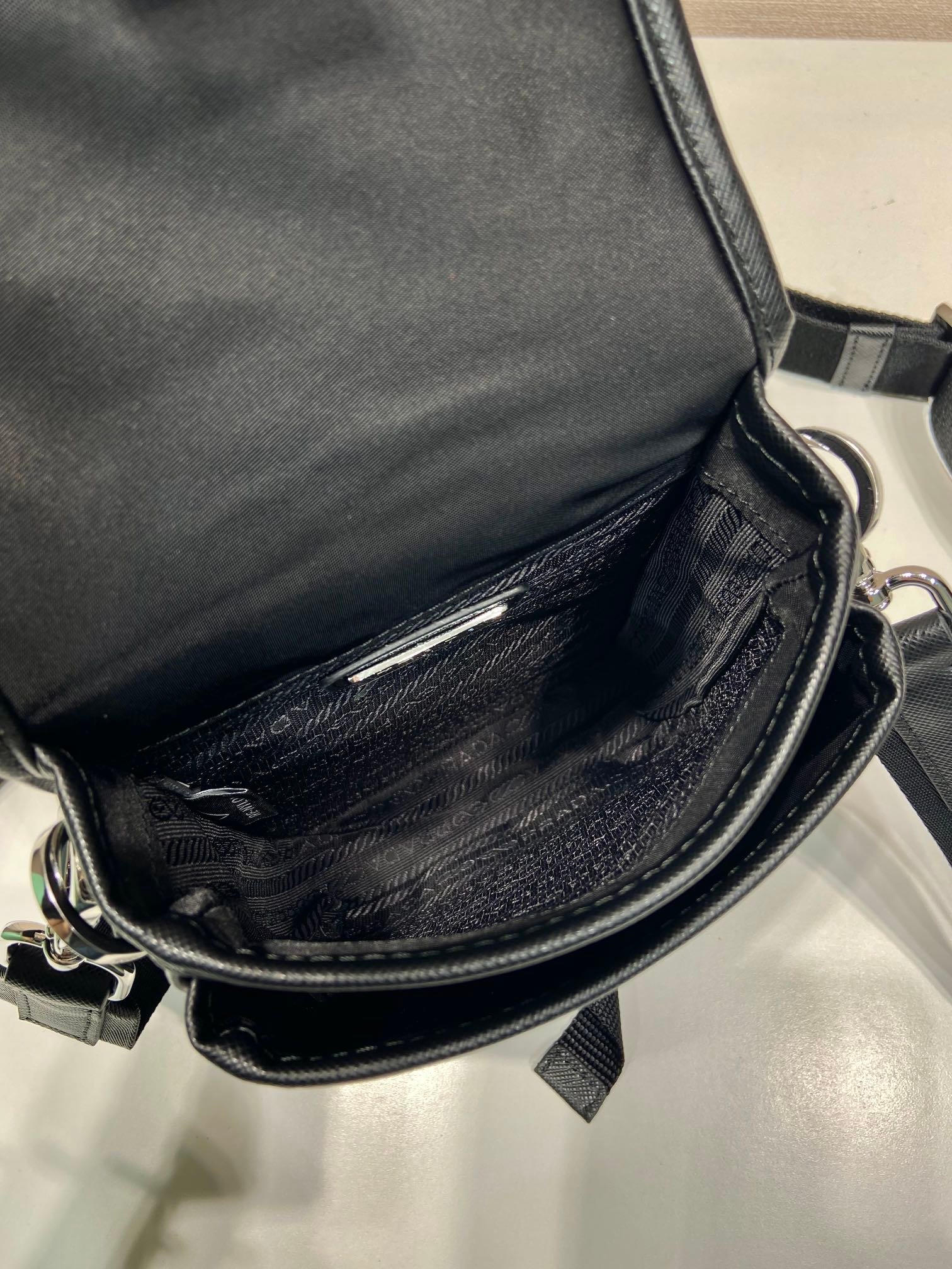 • Material: Re-nylon and saffiano leather trim
