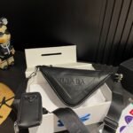 {Style No: X9519Y99} PRA TRIANGLE 26 SHOULDER BAG IN BLACK CALFSKIN