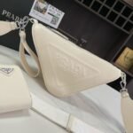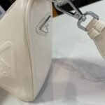 {Style No: ILQ8WAD6} PRA TRIANGLE 27 SHOULDER BAG IN WHITE CALFSKIN WITH STRAP